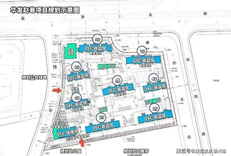 根据设计方案显示, 项目拟建9幢14-18F住宅 及配套设施, 项目非人车分流,部分楼栋首层有架空, 东面有河道经过,南面规划了一处幼儿园用地。