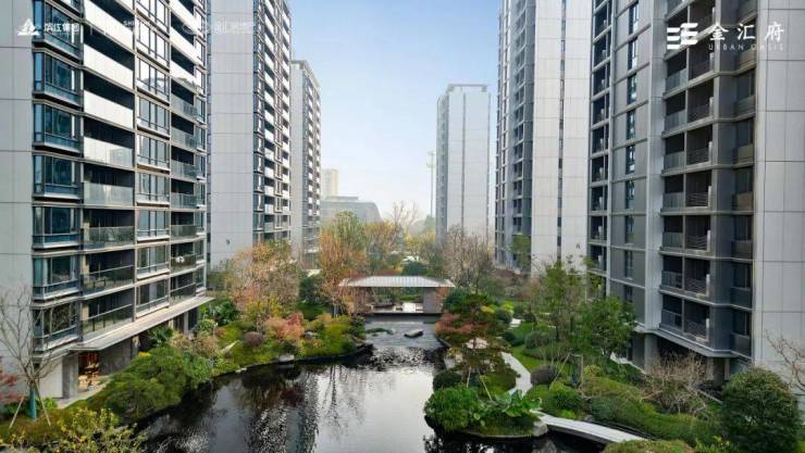 穿过门庭,映入眼眸的,皆是金汇府精心打磨的细腻之美。约35%的绿化率,化为起伏的草坪、疏密有致的林木与蜿蜒小径。设计以自然的“云形山意”为灵感,勾勒出柔和流畅的线条,毫无刻板,唯有令人放松的生机。