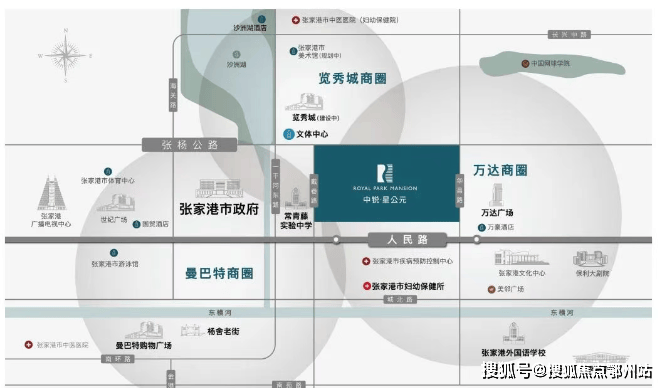 商业配套:周边有万达广场、金茂览秀城等大型商业综合体,距离张家港金茂览秀城大约 857 米,可满足购物、餐饮、娱乐等多种生活需求。
