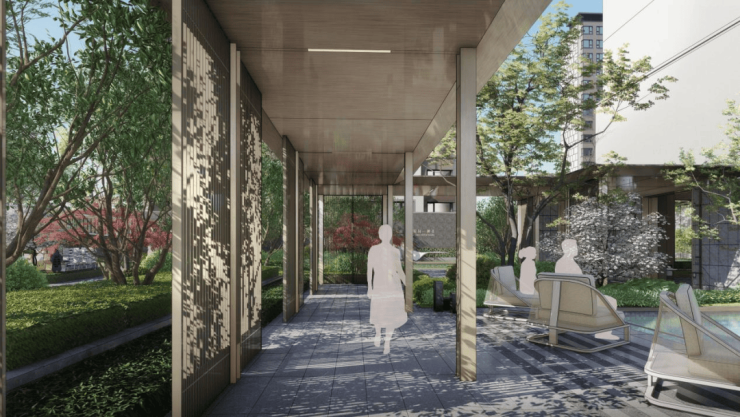 项目以 微光林栖,迎光而来,浮光意境,光影逐梦四重追光礼序 ,以 层层递进之礼 ,贴心设计 无雨归家动线 ,利用 风雨连廊串联社区堂客厅与入户电梯 ,为业主打造尊崇归家体验。