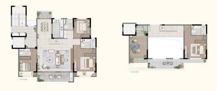 建面约185㎡顶复:洋房里的墅居体验,一楼双层挑空客厅,尺度更加阔绰,二楼一整面的观景阳台、星空露台,诗与远方都唾手可得。