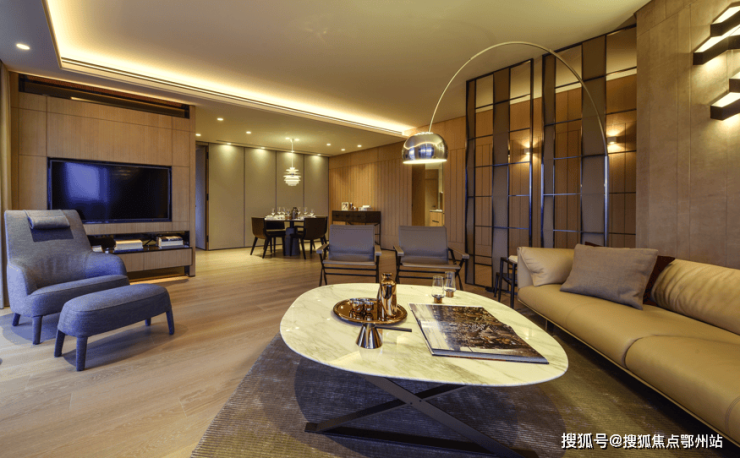 公寓的房间由著名的设计大师梁志天设计布局。空间的简约大气由每一个精心打造的细节所组成,如精致动人的饰面、纯天然的材料、优质大理石的嵌入,一切都让你在不经意间发现别样的美感。房间客厅中,素雅的灰色墙面营造出静谧优雅的氛围,空间视觉的塑造与都市韵律相得益彰。Giorgetti定制家具、B&B全屋豪华家具、FLOS经典灯具的选择,彰显着设计师对美学平衡的精准把握。