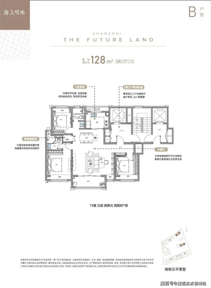 其中, 建面约128㎡大三房,大横厅设计外接大阳台 ,同时客餐厅一体化设计进一步放大社交空间。