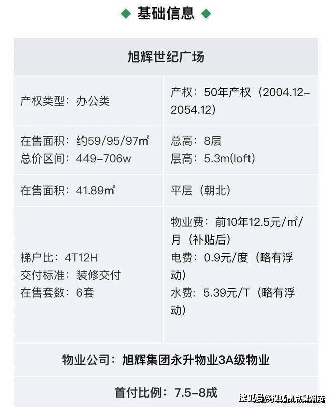 旭辉世纪广场总建筑面积约150000平方米,首期开发约65000平方米。项目包含生态商务总部、LOFT办公、SOHO公寓式办公和5A甲级写字楼。写字楼采用现代化设计,外观以流线型和大面积玻璃幕墙为主,营造出明亮舒适的办公环境。