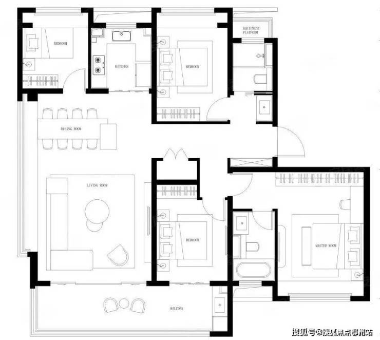 162㎡户型好很多,约5.4米横厅,南向四开间,约15.2米大面宽,3卧朝南,还带南北双阳台,更加实用。