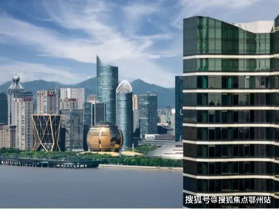 杭州萧山明华誉港城的建筑立面以杭州市花—桂花花瓣为造型灵感,四瓣依次展开,以同频世界审美的曲线立面,融合鎏金玻璃幕墙,让建筑在钱塘江畔熠熠生辉,成为世纪城新地标。