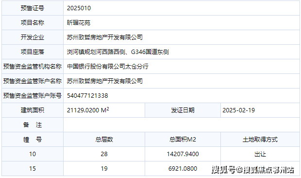 位于太仓 浏河镇板块的 和悦新宸取得预售许可证。此次预售楼栋为 10、15号楼,共计新增建筑面积21129.02㎡,新增房源 233套。