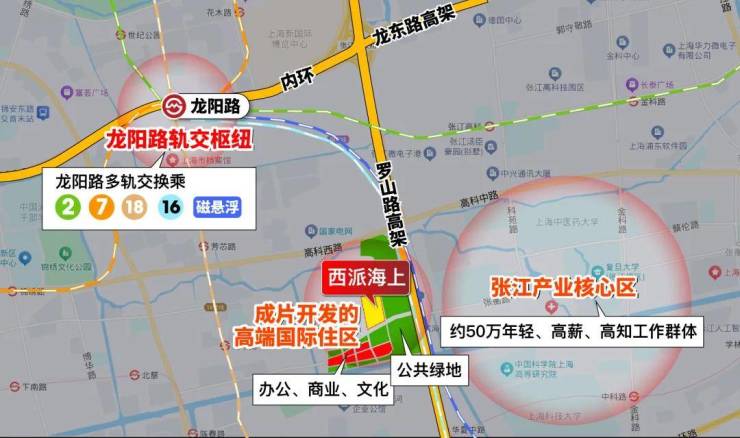 作为国家级科创高地,张江科学城规划面积达220平方公里,集成电路、生物医药、人工智能三大产业产值超万亿,集聚超88万高端就业人口。西派海上与张江高科园区直线距离仅3公里,坐享产业外溢红利与高净值人群的居住需求支撑。
