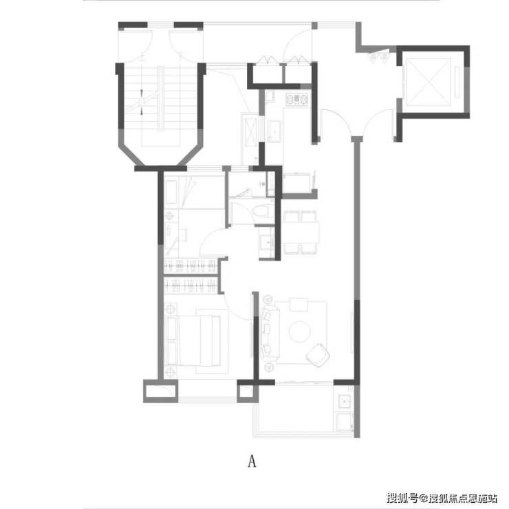 A户型 | 2室2厅1卫 | 建筑面积约75㎡