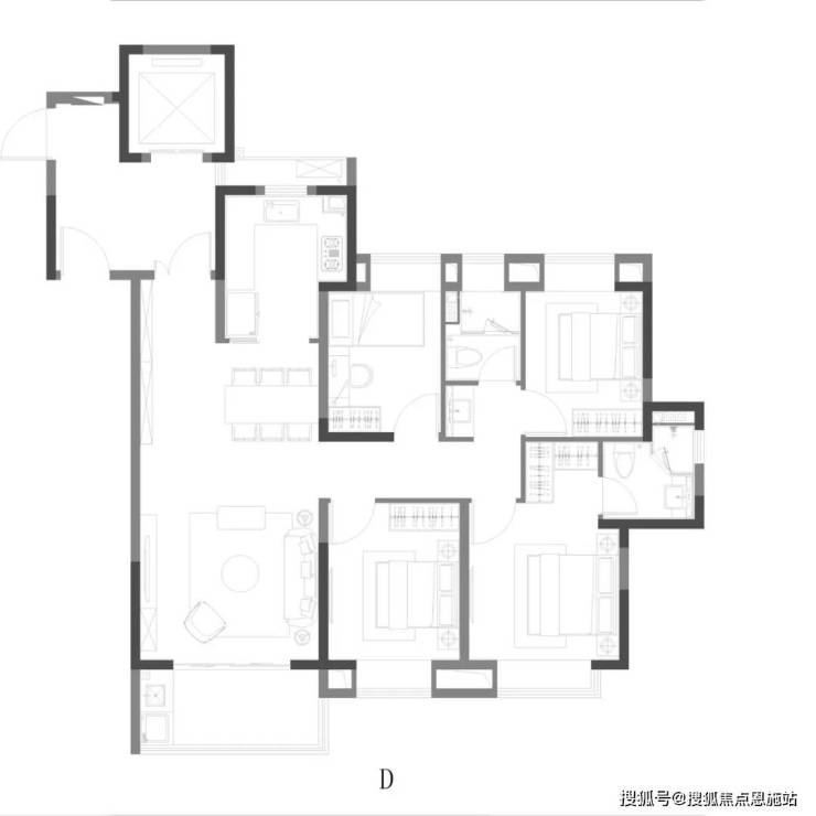 D户型 | 4室2厅2卫 | 建筑面积约122㎡