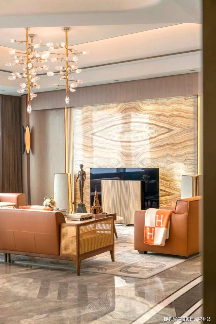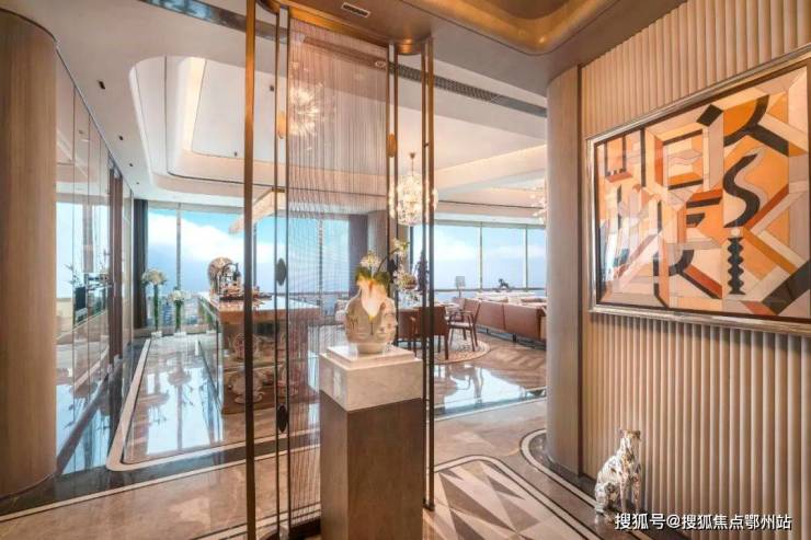 这设计讲究的是那种不张扬的高级感——不是光堆大牌,而是把精致藏在细节里。你看那透光的玉石墙、流线型的卫浴台盆,还有会"跳舞"的波浪造型,处处透着质感。最绝的是主卧里那个意大利进口的保险库,既是私人画廊又是安全堡垒,成功人士标配!
