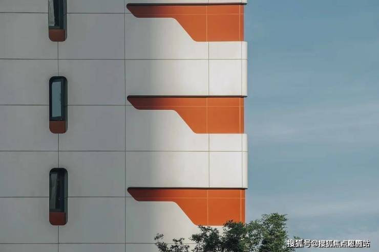 大面白色铝板的墙体都做了弧形转角,整体建筑因此有了不一样的表情;窗户也一样,全都化角为弧。整合在一起,多了一种流线质感。