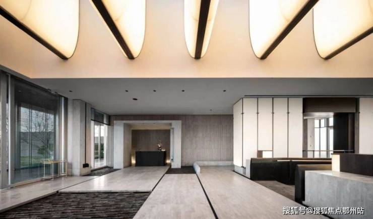 光是入户前的序厅,就相当于常见的125㎡住宅的厨房尺寸,通过2.45米高的字母装甲门入户,270度无界观景面,打造天幕俯览的都市观景台,将中轴景观一网打尽。