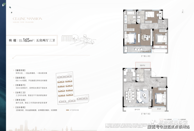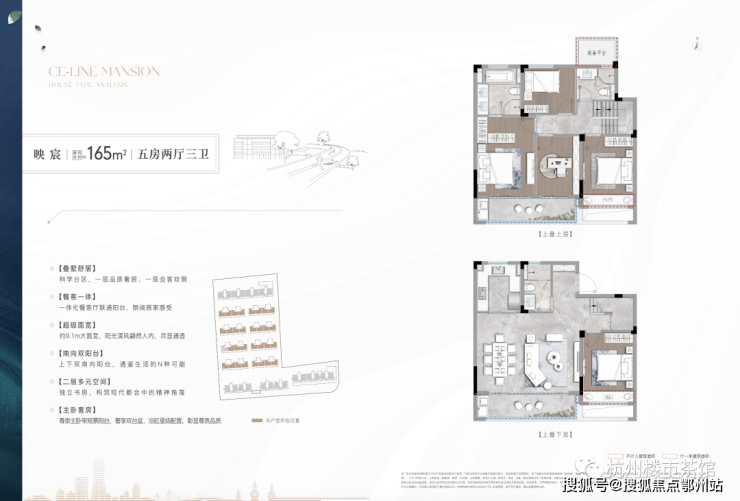 建面约165㎡映宸/映樾叠墅,为两层复式空间设计,五房两厅三卫,足够容纳三代同堂的大家庭,约9.2米的超大面宽,搭配大面积采光玻璃,