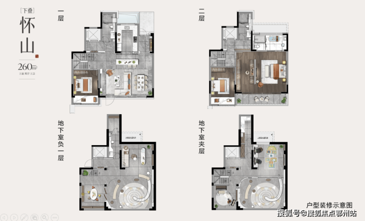叠墅约260㎡下叠户型图: