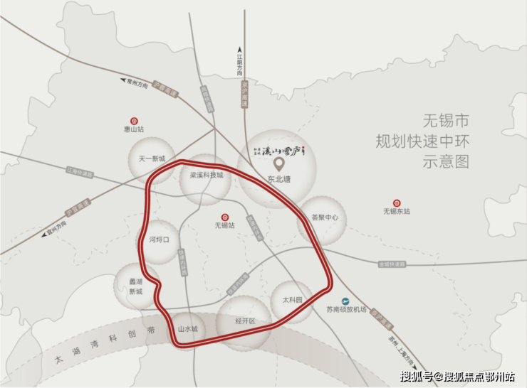 【交通】:地理位置优越,咫尺中环线,速达梁溪科技城、蠡湖新城、天一新城等热门板块,紧邻无锡枢纽、锡虞立交,靠近京沪高速、锡山区主干道东亭北路,东亭北路向南驾车可快速到达东亭商圈,东亭北路往西沿锡虞路便捷通达主城区,沿东亭北路往南可快速到达太湖大道高架。项目临近无锡站、无锡东站、苏南硕放国际机场,速通苏州、南京、上海。