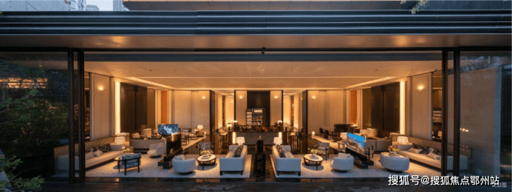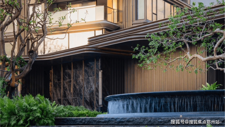 而实景首开的近2000㎡下沉庭院,作为“园林灵魂”,漫步此间,你会看见:乌金原石围合的“玉扣绿岛”上,低调静放着团队自“天下玉源”河南南阳历时遴选而来,近7000年的“国玉”独山璞玉,与山野林木共此氤氲灵气,尽显东方温润;从诗经走出来的近11m高参天乌桕,则再现古诗中所描述的“秋林城郭画图中,乌桕千株照眼红“的诗意;采用约6.7m幻影蓝奢石打造的“叠级水瀑”跌水台,池底以呈现天然墨绿色泽的蓝金刚石铺就,映水之澄明,境之悠远;连台阶都采用了“黑色花岗岩之王”安哥拉黑整石,沿云梯而上,让人返璞内心东方......