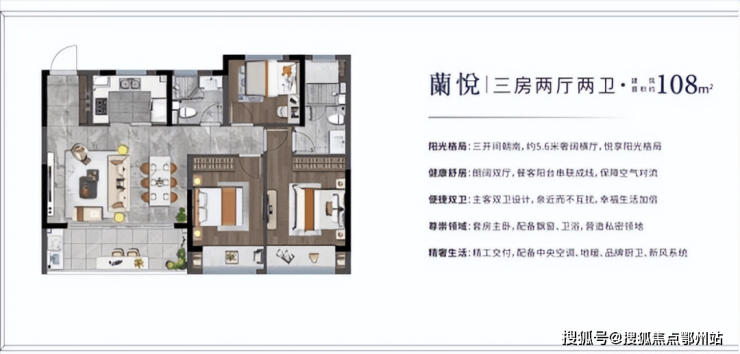 【108㎡户型 3房2厅2卫】