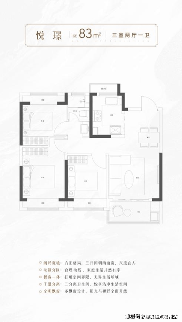 建面约70-90m²悦境高层,精工二至三房户型, 延续墅区景观规划与绿化空间,舒享同等低密环境,举目瞰景,安适悠然。