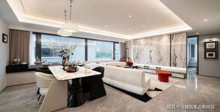 但凡看过棠悦芳华轩的朋友,会注意到项目的 入户单元门、电梯公区等都藏着很多奢雅的细节,诸如各类岩板、石材、铝板等高浓度运用,瞬间提升了空间的档次。