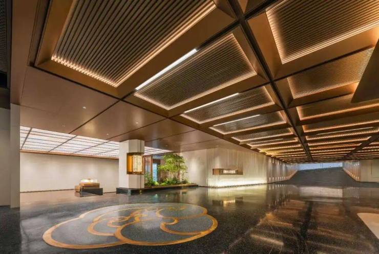 奢华用材就更不用说了,随处可见的墨染流云、白沙米黄、 Prada绿、凤羽黑金,到蓝水晶、 福鼎黑 、中国黑石皮、美国白金 ……堪称奢石博物馆。还有一个别的楼盘难以超越的是 建面约2000方下沉式会所 ,有恒温泳池、健身房、私宴厅、茶室等功能空间,全都环绕中央水庭而设,风景旖旎。