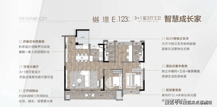 樾 璟 | E户型 | 建筑面积约123㎡ | 3+1室两厅两卫
