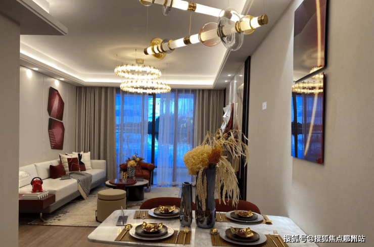 石膏板平顶搭配磁吸灯,彰显居者身份的同时尽显时尚简约之风; 艺术处理的电梯按钮、首层玻璃栏杆的打造都是中奥·滨河境匠心筑家的美好见证。
