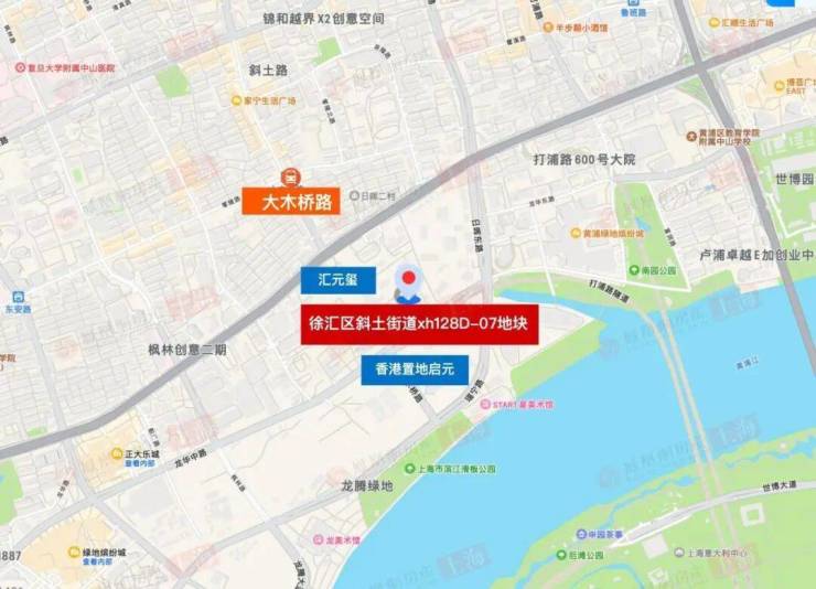 该地块坐落于徐汇滨江板块,与西岸金融城相邻,周边优质配套集聚。交通方面,地块周边有地铁4、7、12号线环绕,最近站点为4、12号线换乘的大木桥路站。
