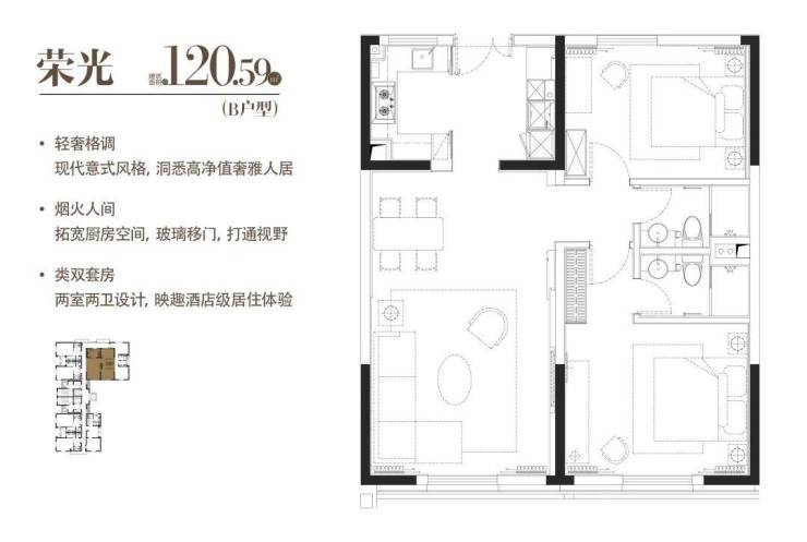 B|荣光|建面约120.59m²|两室两厅一厨两卫
