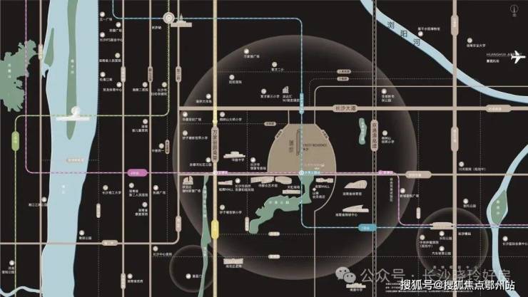 紧邻2、4号线换乘沙湾公园站,西侧约1km为4、5号线换乘圭塘站,向东最快2站可直达长沙南高铁站,“两横三纵”主干路网交织,快速串联城市核芯商圈、高铁站及机场,市内公交系统通达全城,城际交通可紧密联系株洲、湘潭。