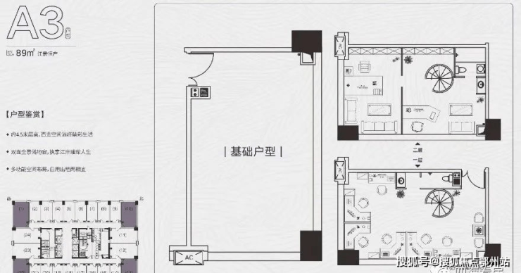 在售产品:①13-33层是4.5米层高LOFT:47㎡、83㎡、89㎡ (主推)