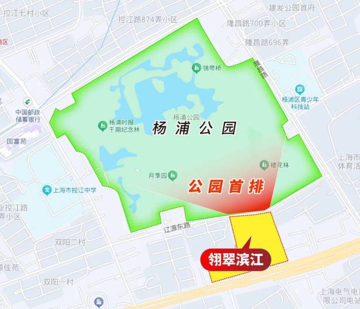 项目距离约22万方的杨浦公园只隔了一条辽源东路,几乎算得上是公园首排。
