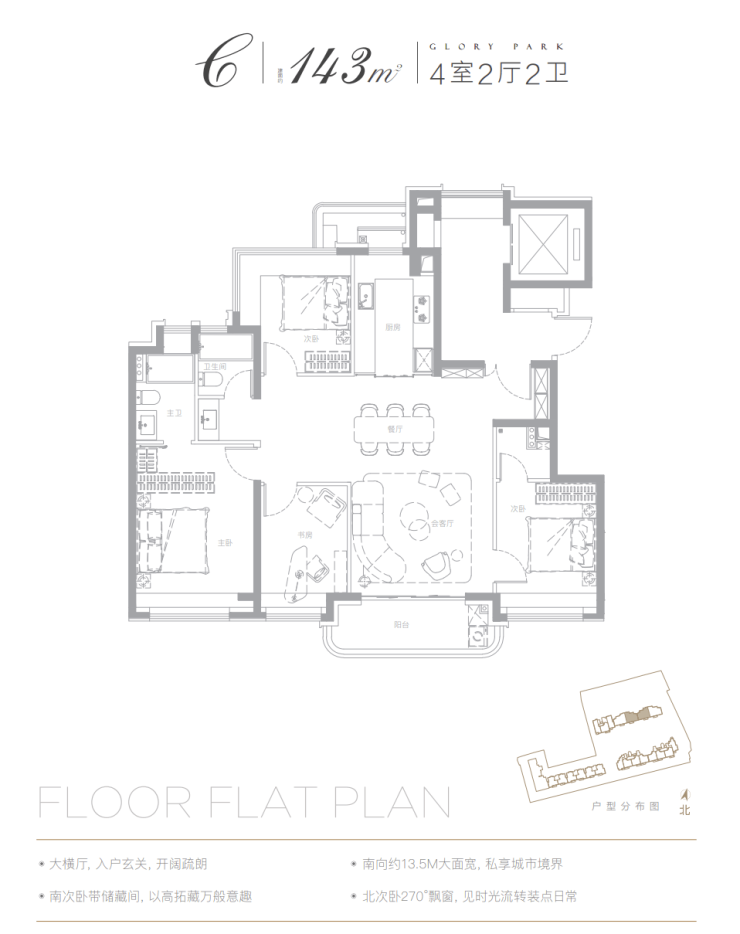 我们以已经开放样板间的建面约143㎡户型为例: