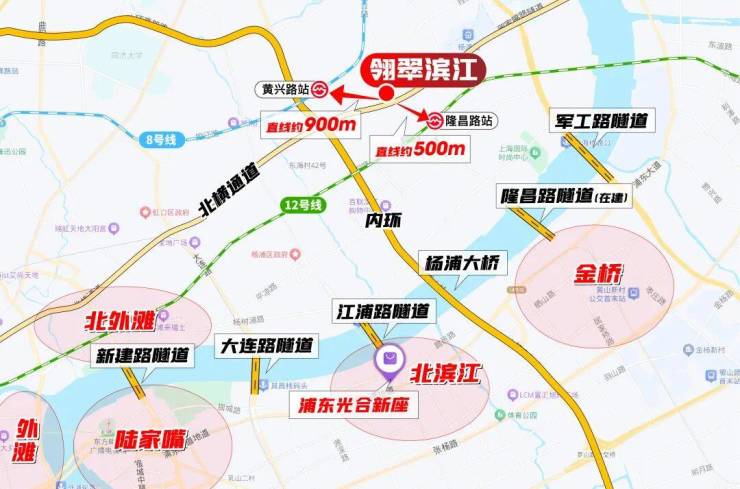 再加上内环和五条过江隧道(包括桥)的加持,像 东外滩核心区、北外滩核心区、陆家嘴、世纪公园、南京西路、外滩等都是业主未来的生活圈。