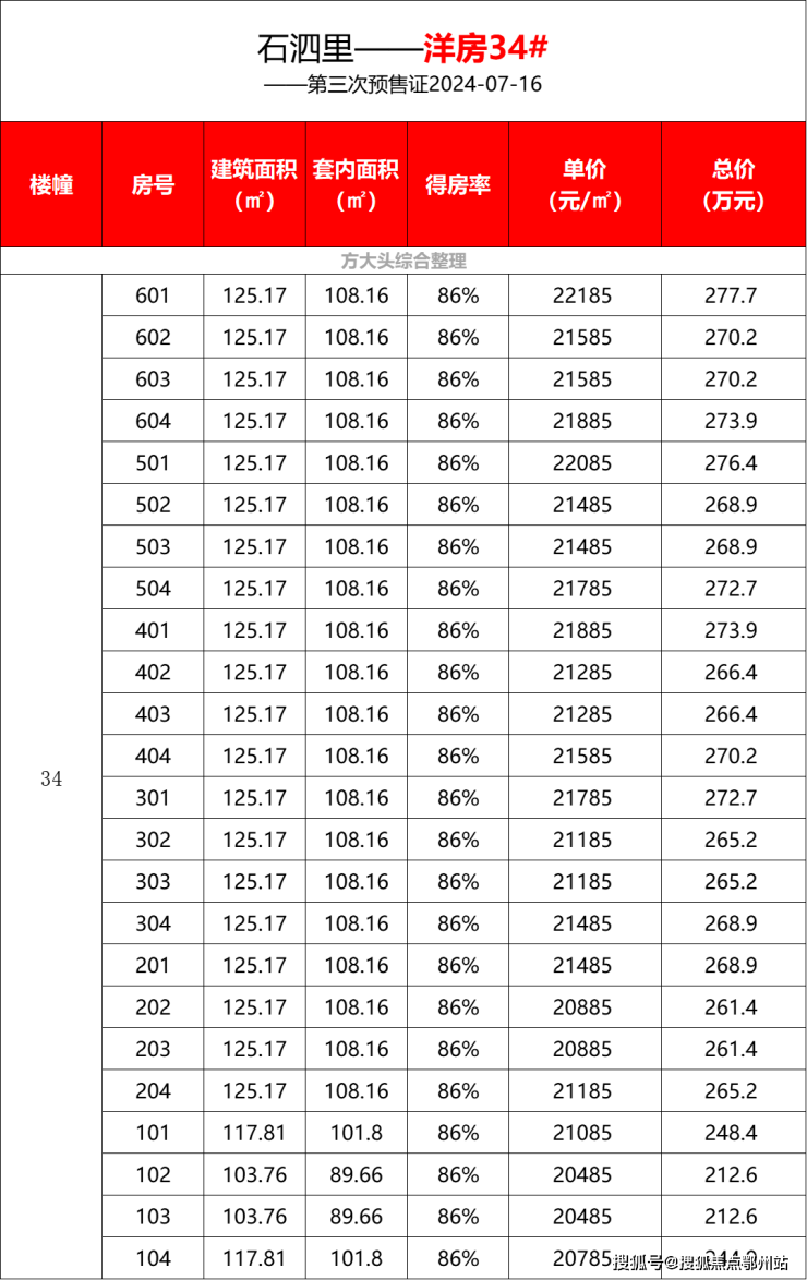 一房一价如下: