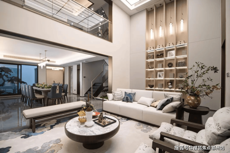 摆上一组沙发,或静坐闲读,或花园晚餐,或邀三五好友欢聚,都有一种悠然自得的安定感。 长面宽、短进深格局 来到室内, 一楼层高约3.4米、面宽约7米大横厅霸气十足,搭配大面落地窗,阳光清风肆意涌入,将室内映衬的一片明亮,毫无阴影死角。