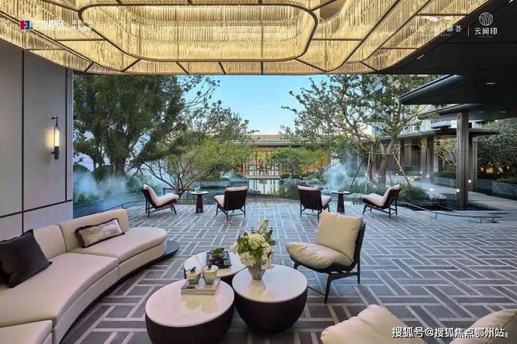 约350㎡水院对标虹夕诺雅式的静谧氛围,约26m行政连廊串联门庭、水院与会客空间,森林剧场与滨水花园用树阵与曲线铺装织出日常的“松弛感”。