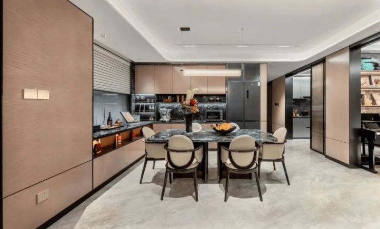 值得一提的是,项目全屋精装标准高达3000 元 /㎡,除了中央空调、地暖、新风系统等常规配置外,更引入了先进的 五恒科技系统,实现 "恒温、恒湿、恒氧、恒洁、恒净" 的健康居住环境。恒温系统采用地源热泵与毛细管网辐射技术,避免传统空调的吹风感与温差问题; 恒湿系统实时调节室内湿度 ,有效预防霉菌滋生与皮肤干燥; 恒氧系统 24小时置换新鲜空气,过滤 PM2.5与有害气体;恒洁与恒净系统则从水质、隔音、建材环保 等方面,全方位保障居住健康。