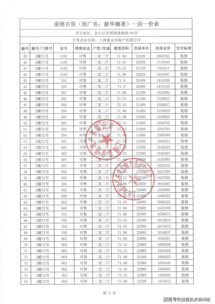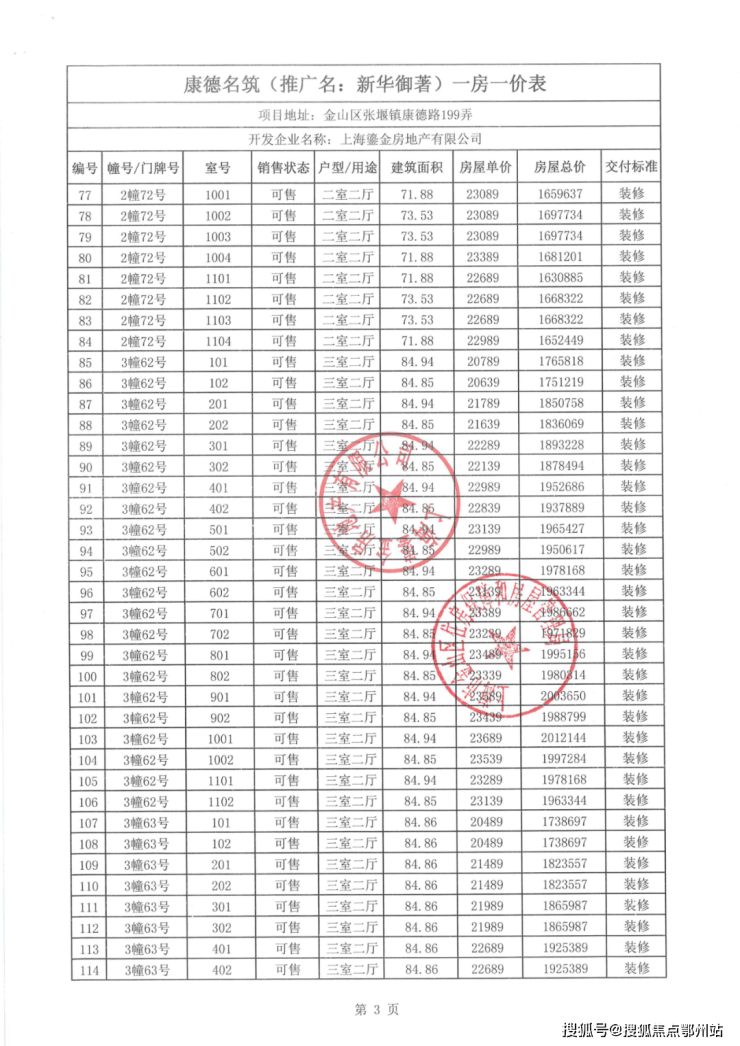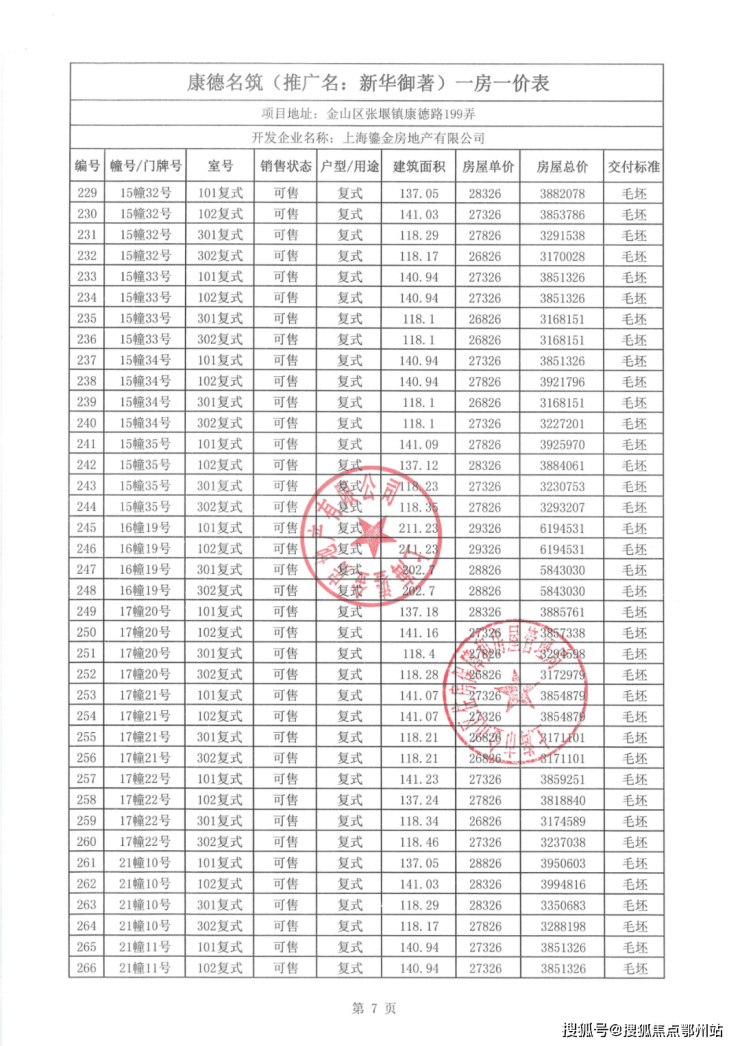 一房一价表如下:
