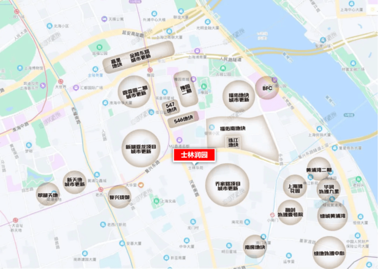 士林润园属于黄浦区老西门街道旧城改造项目,项目一期于2007年竣工,项目北面复兴东路一路之隔就是【复地雅园】和【璞玉one】。
