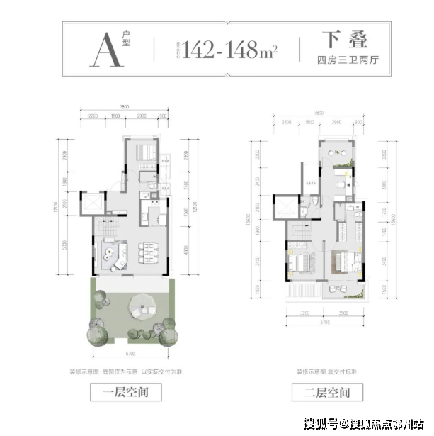 以C户型下叠为例,约18.6m南向大面宽(双层),无界风景延伸入室;270°环幕采光,尽情沐浴暖阳。在珍存的低密土地上