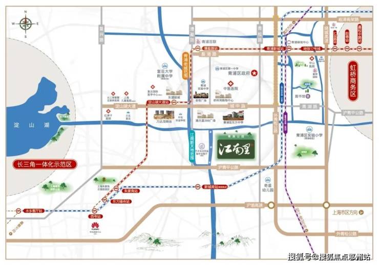 轨道交通:17号线,2号线,上海示范区线(在建),嘉青松金线(在建)