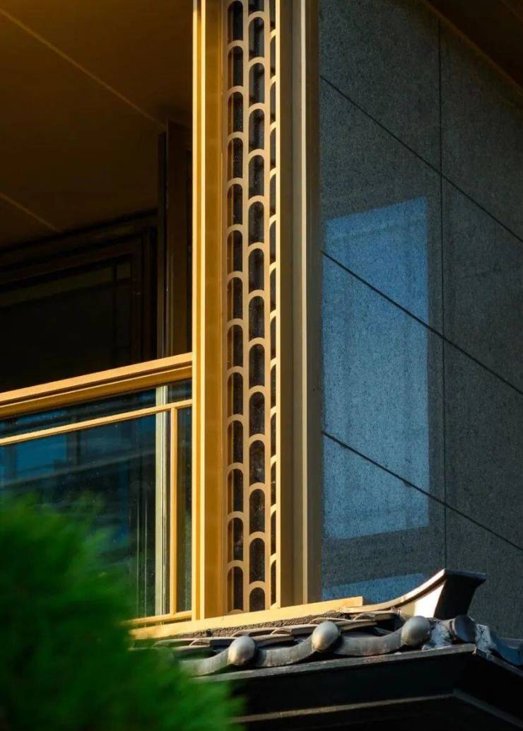 以卓越的窗墙比和大面积灰蓝玻璃,极简化打造光影天幕,倒映自然之境;在东方屋檐和宋韵飞檐之上,融揉现代审美工艺,诠释当代建筑的东方大美;