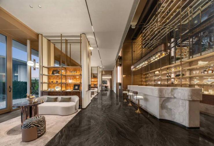 随处可见的仿大理石肌理的岩板,散发出温润而典雅的气质,妥妥的板块高品质楼盘。
