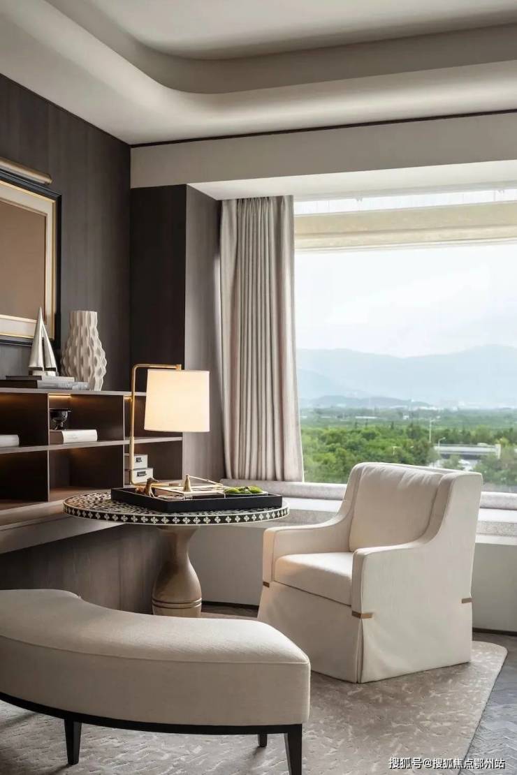 奢阔面积的套房主卧,演绎空间精奢美学的优雅形态,大视野瞰景飘窗,将自然美景一览无余,让阳光与清风肆意流淌。