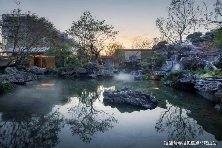 以水、山、石、植相结合打造而成,建筑与水池相互呼应,虚实相间,儒雅气质舒散开来,自然禅意之感油然而生。