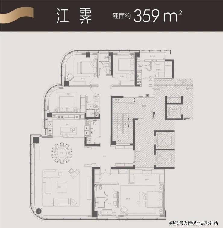 中国传统文化中“五”为天地平衡之数,呼应项目的居住哲学——“半江繁华,半园静谧”。