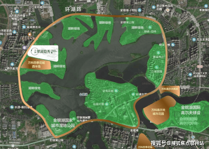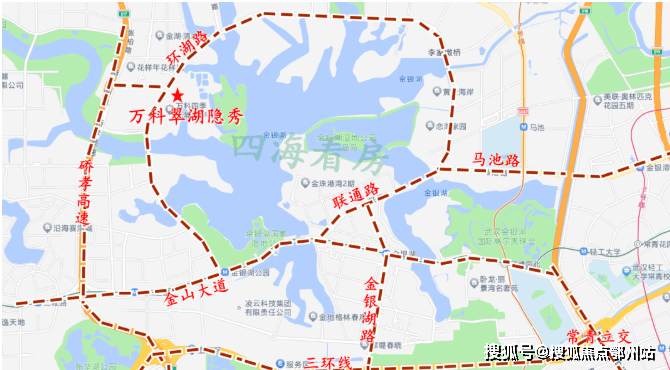 万科翠湖隐秀位于环湖路与新桥路交汇处,在楼市划分中属于金银湖环湖路板块,行政划分属于东西湖区。