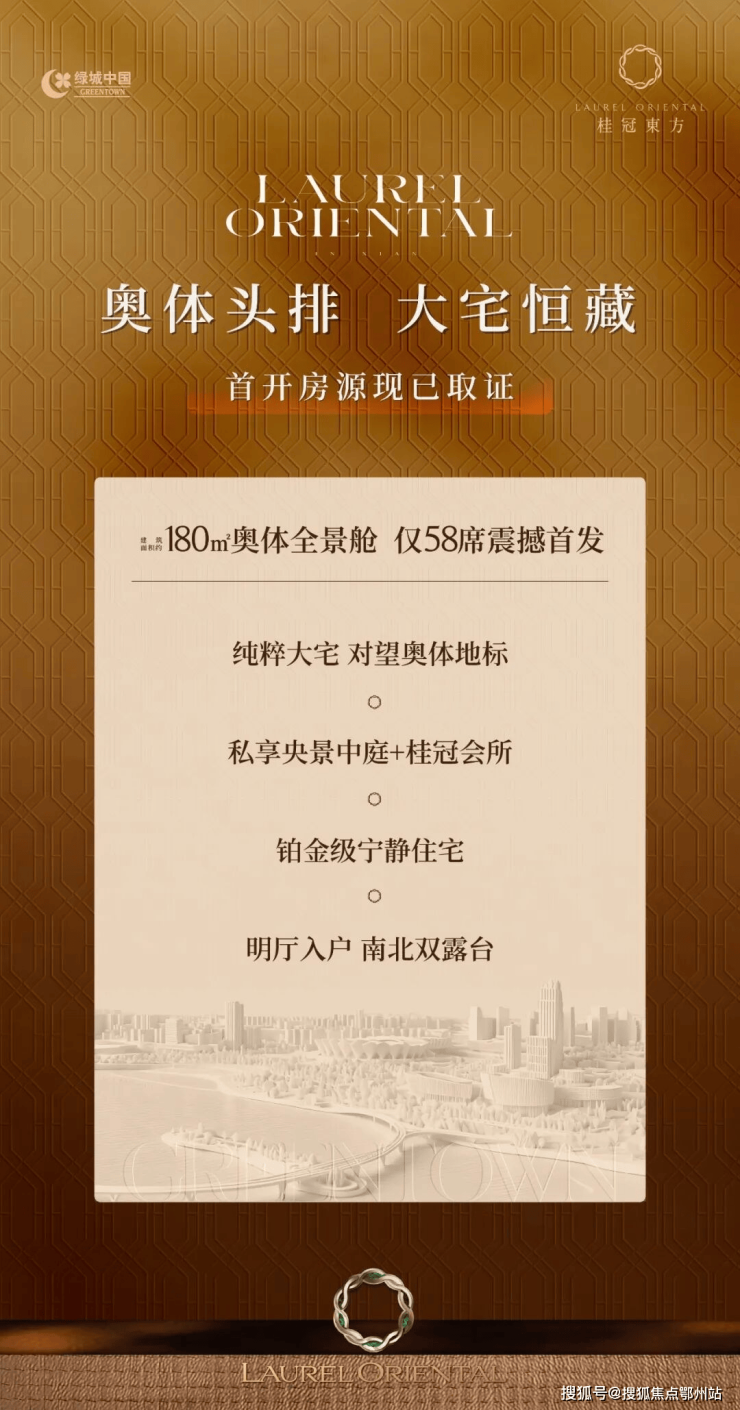 执掌奥体头排正席,西安首屈一指的城市热门板块,万众瞩目的绿城·桂冠東方首批房源正式取证: 58席建面约180㎡定制大宅 ,即将开启奥体核芯封藏时刻。