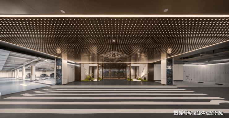 地下入户大幅延展 星光吊顶尺度,打造一整片“星空”,并有触点丰富的酒店场景配合,直至精奢单元门厅,让酒店式迎宾的高级感充满归家每一寸路途。